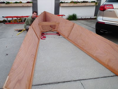 We found it much easier to attach the hull sides to the stem with the hull sides spread apart to the stem angle. Had to move outside to get the room.